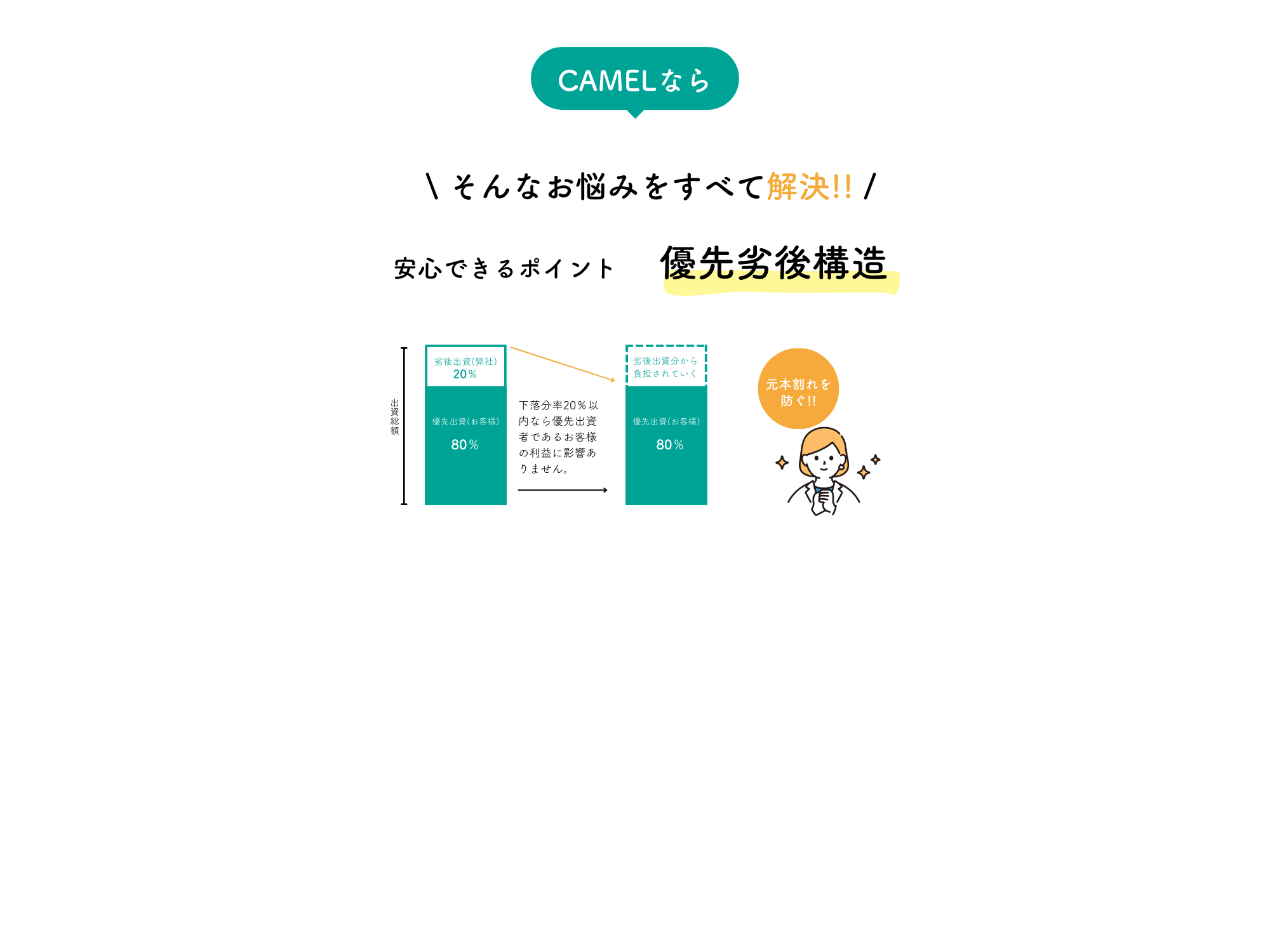 今まで投資の知識もなく株やFXに手を出してしまい痛い目に合いました。結婚して子供もできたので安心して投資が出来るCAMELに挑戦しました。